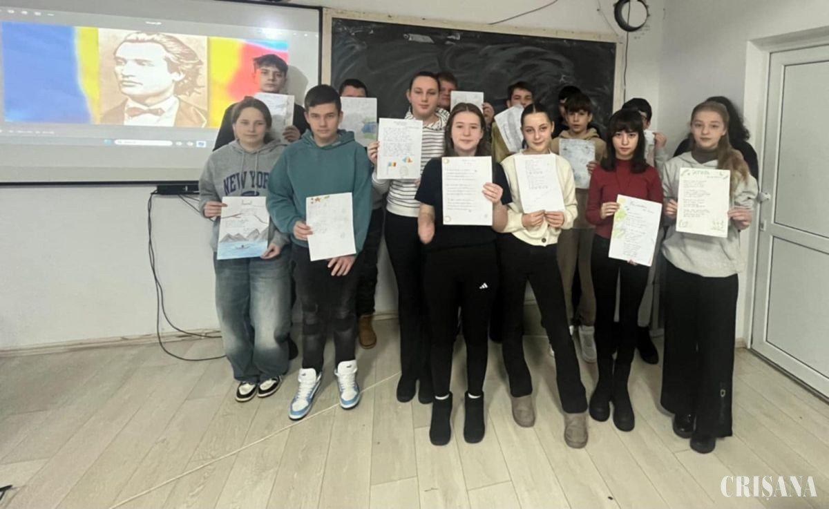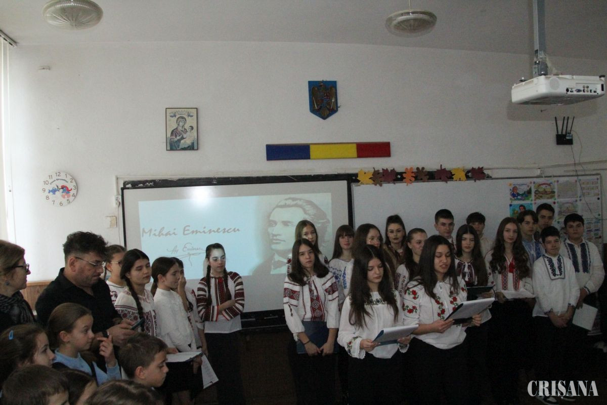 Elevii Colegiului Național „Avram Iancu” Ștei – a cărui conducere este compusă din prof. Cristian Andru și Cristian-Petru Gavriș, director, respectiv director adjunct – au inițiat o serie de activități pe parcursul săptămânii școlare 12-16 ianuarie, menite să omagieze atât Ziua lui Mihai Eminescu, 15 ianuarie, cât și Ziua Culturii Naționale, la aceiași dată, săptămână care poate fi catalogată la instituția școlară șteiană ca „Săptămâna Culturii Naționale”. Au fost implicați atât elevii din ciclul gimnazial, care au recitat poezii din lirica eminesciană, cât și cei de la liceu. Elevii clasei a X-a B au participat la o dezbatere cu tema „Este Mihai Eminescu actual pentru tineri” și au urmărit o prezentare despre viața și opera marelui poet, în timp ce elevii clasei a XII-a D au interpretat versuri din poemul „Luceafărul”, prof-coordonator Tat Roxana-Ioana. Sub coordonarea prof. Ifrim Carmen elevii din clasele a IX-a B și a XI-a C au recitat poezii, au realizat un documnetar despre Mihai Eminescu, dar și citate despre luceafărul poeziei românești. Sub coordonarea prof. Gavriș Georgiana- Alexandra elevii din clasa a X-a C au vizionat un filmuleț despre viața lui Mihai Eminescu, după care și-au notat pe câte o frunză fiecare strofă preferată și au format un copac cu acele frunze, în timp ce elevii din clasele a IX-a D și a X-a D au recitat poezii eminesciene scrise în limba română și în limba latină, iar cei din clasa a XI-a D au creat o planșă cu informații despre marele scriitor și au notat câte o strofă preferată ce simbolizeză aceasta și de ce au ales-o. „Azi marcăm Ziua Culturii Naționale, ziua unor oameni care au fost, a unor oameni care sunt: Dimitrie Cantemir, Constantin Brâncuşi, Nicolae Iorga, George Călinescu, Neagu Djuvara, Mircea Eliade, Mihai Eminescu. Ceea ce facem azi e ca să readucem ȋn prezent chipuri care ne leagă de trecut. Nu trece an, cu un prilej sau altul, să nu i se amintească numele lui Mihai Eminescu, drept o noţiune fundamentală, iar Eminescu a devenit stil naţional. Ziua lui de naştere, 15 ianuarie, este o Sărbătoare a Poeziei. Omul Eminescu s-a topit profund în universalul concept existenţial Eminescu, în viziuni filosofice şi metafore Eminescu şi iată-l astăzi pe Poet renăscând între noi, mai viguros parcă, mai strălucitor decȃt odinioară, ca o coloana fără de sfârşit în jurul căreia gravitează întregul neam românesc şi odată cu ele, elevii şi dascălii noştri”, a afirmat, pentru CRIȘANA, prof. Mihaela Zaha, consilier educativ la CN „Avram Iancu” Ștei. La ambele instituții școlare a participat și Marius Dușe, referentul Casei de Cultură „Miron Pompiliu” Ștei.