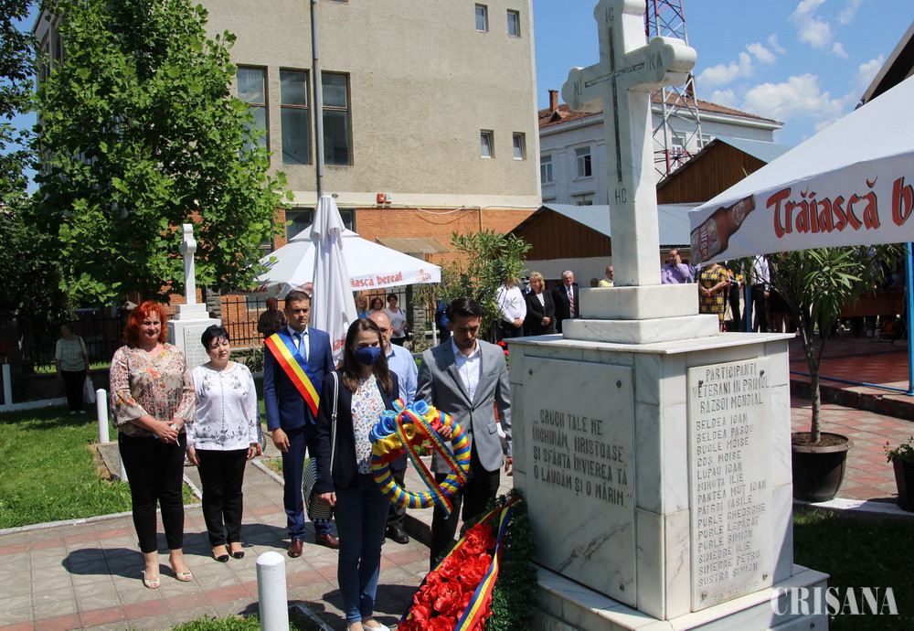 Celebrată în fiecare an, Ziua Eroilor a avut parte de această dată de reguli mai stricte din cauza situației pandemice, chiar dacă restricțiile sunt un pic mai lejere. Organizatorii acestui deosebit eveniment derulat la poalele Munților Apuseni au luat toate măsurile necesare paentru buna desfășurare a unor momente pline de emoție, dar și de o încărcătură istorică aparte din viața comunității. Evenimentul, al cărui moderator a fost eleva din clasa a X-a D de la CN „Avram Iancu” Ștei, Giulia Crișan, s-a derulat în curtea bisericii din centrul orașului și a debutat cu Imnul Național, al Europei și cel al Eroilor, după care preoții locali, Gheorghe Tal și Adrian Suciu, au oficiat o slujbă de pomenire, pentru a cinsti memoria eroilor căzuți pe câmpurile de luptă pentru credință, întregirea și libertatea neamului. Din partea autorităţilor locale a participat ec. Marius Cioară, viceprimarul oraşului Ştei, precum şi câţiva consilieri locali, în timp ce Consiliul Județean Bihor a fost reprezentat de consilierul județean Dorin Boca. Moderatorul evenimentului a urat bun venit tuturor participanților și a dat cuvântul viceprimarului orașului Ștei, ec. Marius Cioară, după care prof. de istorie de la CN „Avram Iancu”, Mihaela Zaha, a vorbit despre semnificația acestei zile deosebite din viața poporului nostru. Elevii de la instituțiile de învățământ din oraș au pregătit și susținut un program artistic, primii fiind „prichindeii” de la GPP, coordonați de prof. Lucreția Cearnău, directoarea instituției, după care au urmat elevii de la Școala Gimnazială „Miron Pompiliu”, coordonați de prof. Emanuel Coroiu, director și Romulus Fășie, director adjunct. Au urmat elevii de la CN „Avram Iancu” coordonați de profesorii Cristian Andru și Cristian-Petru Gavriș, director, respectiv director adjunct, dar și de elevii de la LT „Unirea”, coordonați de prof. ing. Adrian Gruie, director și prof. Viorica Mone, director adjunct. Elevii „uniriști”, dar și alte câteva persoane, au atras admirația celor prezenți datorită hainelor populare, tradiționale din Depresiunea Beiușului, purtate cu multă grație, dar și respect. Într-un cadru deosebit de solemn, viceprimarul orașului Ștei, ec. Marius Cioară, l-a felicitat pe Ioan Purle (Onița veterinarul) pentru titlul de Cetățean de Onoare post-mortem (conform Hotărârii Nr. 46 a CL Ștei din 25 martie 2021) atribuit tatălui acestuia, Alexandru Purle, veteran de război. La ora 12.00, când clopotele au început să bată, s-a păstrat un moment de reculegere, după care s-au depus jerbe și flori, după cum urmează: Primăria și Consiliul Local Ștei; Consiliul Județean Bihor; GPP Ștei; Școala Gimnazială „Miron Pompiliu”; CN „Avram Iancu”; LT „Unirea”; Poliția Orașului; Stația de pompieri; Secția Jandarmi; Spitalul Orășenesc; Solceta S.A; Apia Ștei; SC CERT INVEST SRL; Societatea Băița SA; Banca Cooperatistă „Izvoru” Ștei; Banca Transilvania - Sucursala Ștei, dar și două formațiuni politice, PNL Ștei și PSD Ștei. Începută și sfârșită într-un mod deosebit de sobru, ceremonia s-a constituit într-un moment aparte pentru aducere de dovezi ale recunoștinței pentru jertfa supremă a străbunilor, dar și laude de către cei prezenți, care au marcat, sub Apuseni, așa cum se cuvine această zi din viața poporului nostru.