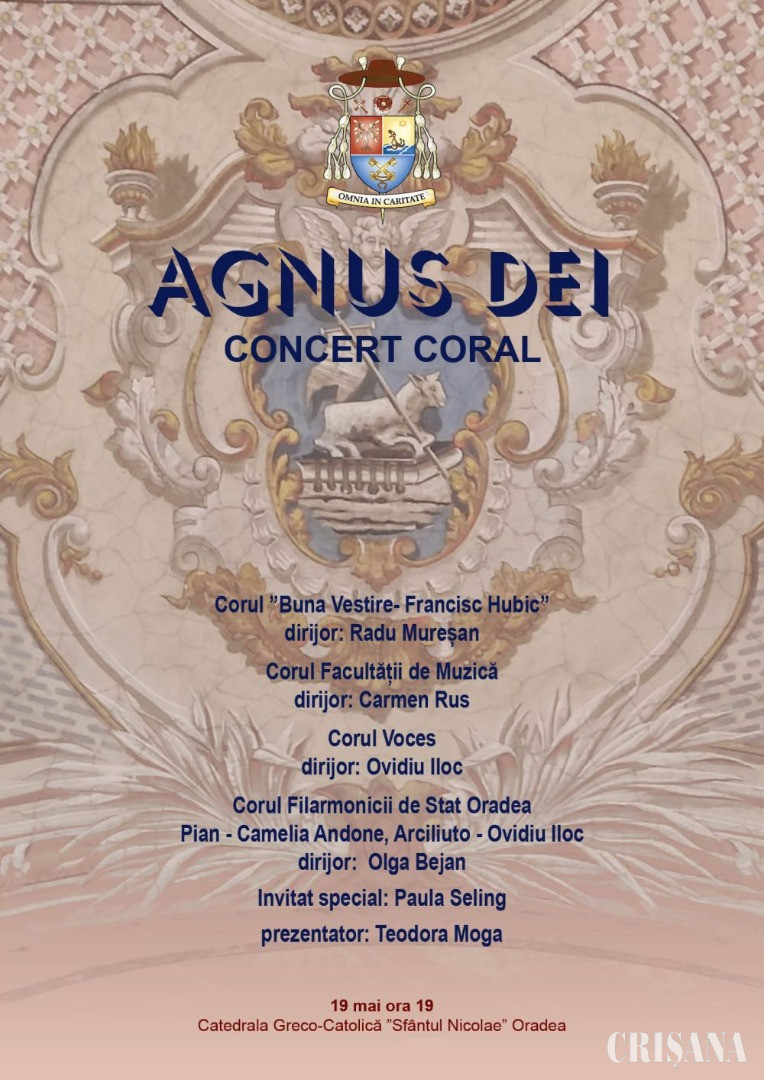 Cu binecuvântarea Preasfinției Sale Virgil Bercea, în bucuria Învierii Domnului, Episcopia Greco-Catolică de Oradea vă invită să luați parte duminică, 19 mai, de la ora 19.00, în Catedrala „Sf. Nicolae” din Oradea, la Concertul coral „Agnus Dei”.