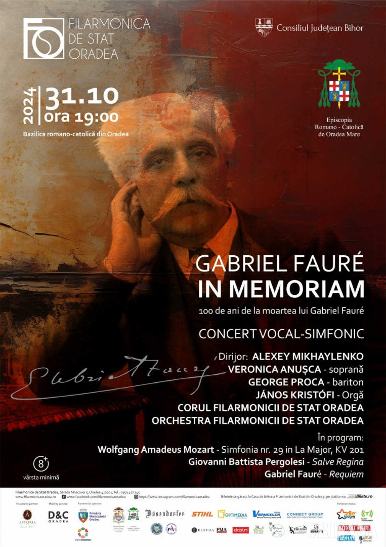 „În acest an, la 100 de ani de la trecerea în neființă a compozitorului francez Gabriel Fauré, îi aducem un omagiu prin interpretarea lucrării sale emblematice „Requiem”. Sub bagheta dirijorului Alexey Mikhaylenko, Orchestra și Corul Filarmonicii vor fi acompaniate în premieră de orga Bazilicii, recent restaurată”, anunță organizatorii evenimentului.