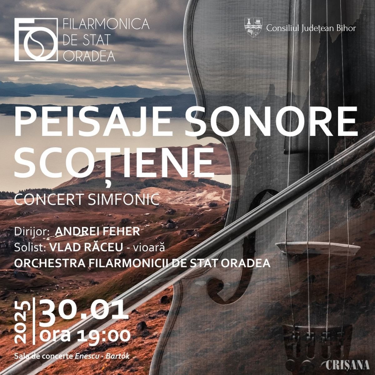 Melomanii sunt invitați joi, 30 ianuarie, de la ora 19.00, în Sala de concerte „Enescu – Bartók” a Filarmonicii orădene, la concertul intitulat „Peisaje sonore scoțiene”, condus de maestrul Andrei Feher.