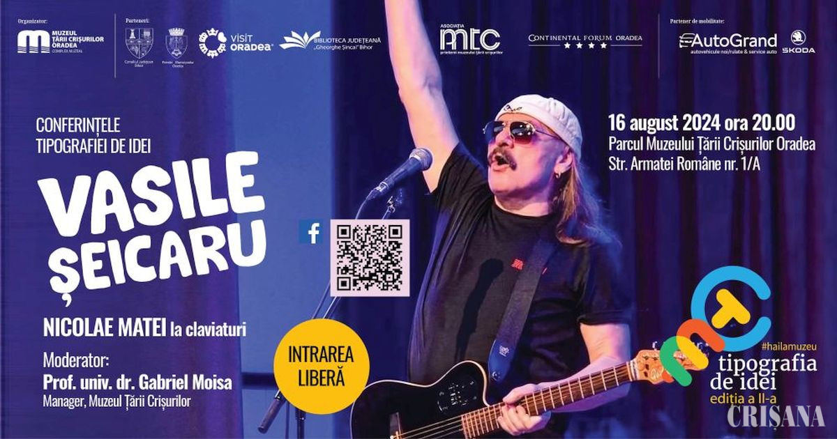 Muzeul Țării Crișurilor Oradea - Complex Muzeal, împreună cu Biblioteca Județeană „Gheorghe Șincai” Bihor și în parteneriat cu Consiliul Județean Bihor, Primăria Municipiului Oradea, Visit Oradea, Hotel Continental, Asociația „Prietenii Muzeului Țării Crișurilor” și Autogrand Oradea - Skoda, organizează evenimentul Conferințele Tipografiei de idei | #hailamuzeu, susținut de prof. univ. dr. Gabriel Moisa, istoric și manager al instituției muzeale alături de invitatul special Vasile Șeicaru, muzician și compozitor. Evenimentul va avea loc vineri, 16 august, de la ora 20.00, în parcul Muzeului Țării Crișurilor (str. Armatei Române nr.1/A).