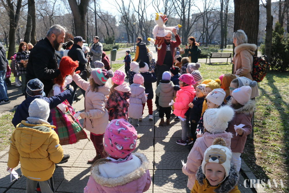 Norocoșii copii care s-au alăturat pe parcurs paradei, dar și cei pe care alaiul de personaje i-a surprins în Parcul 1 Decembrie, au avut ocazia să interacționeze cu păpușile cărora le-au dat viață actorii celor două trupe de teatru și au primit câte un porumbel din origami, simbol al păcii și empatiei.