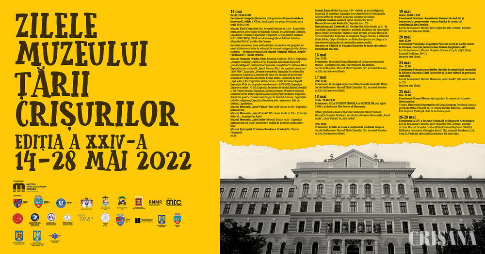 Cea de-a XXIV-a ediţie a Zilelor Muzeului Ţării Crişurilor se va desfăşura în perioada 14-28 mai şi va curpinde o serie de evenimente atractive, de la expoziţii inedite la recitaluri muzicale sau prezentări de carte.