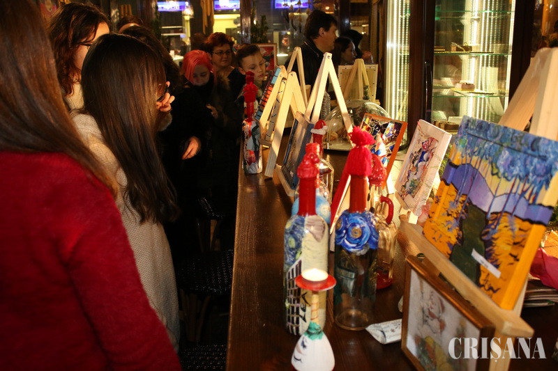 Cine ar fi crezut că o dorință poate genera un grup de artiști dornici să exploreze arta la o cafea? Ei bine, luni, a fost ziua în care tinerii și-au prezentat roadele, în cadrul expoziției, care a fost vernisată la Café Frei. Ce au expus? Exact ceea ce au pictat din septembrie până în decembrie: natură statică, flori, peisaj, pictură pe sticlă și globuri. În total, 25 de picturi și 30 globuri. „Este o expoziție inedită, în cadrul căreia împodobim bradul, așteptăm vizitatori și o ascultăm pe Amelie Moțoc cântând câteva acorduri la chitară. Apoi, lucrările se pun în vitrina deja obișnuită să ne găzduiască micile opere până pe 10 ianuarie”, ne-a declarat profesoara Florence Sabău, cea care din anul 2004 conduce Atelierul de pictură care îi poartă numele.Printre expozanți, s-au numărat: Andrei Mladin, Maria Radu, Mark Birinyi, Toni Chiș, Adelin Paina, Ruxandra Rotar, Roxana Maior și Iulia Bejușca.