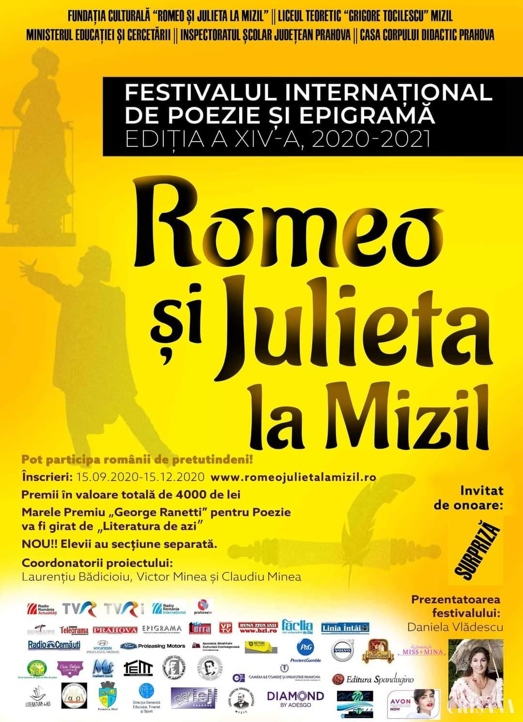 Până pe 15 decembrie, continuă înscrierile la Festivalul Internațional de Poezie și Epigramă „Romeo și Julieta la Mizil”, ediția a XIV-a.