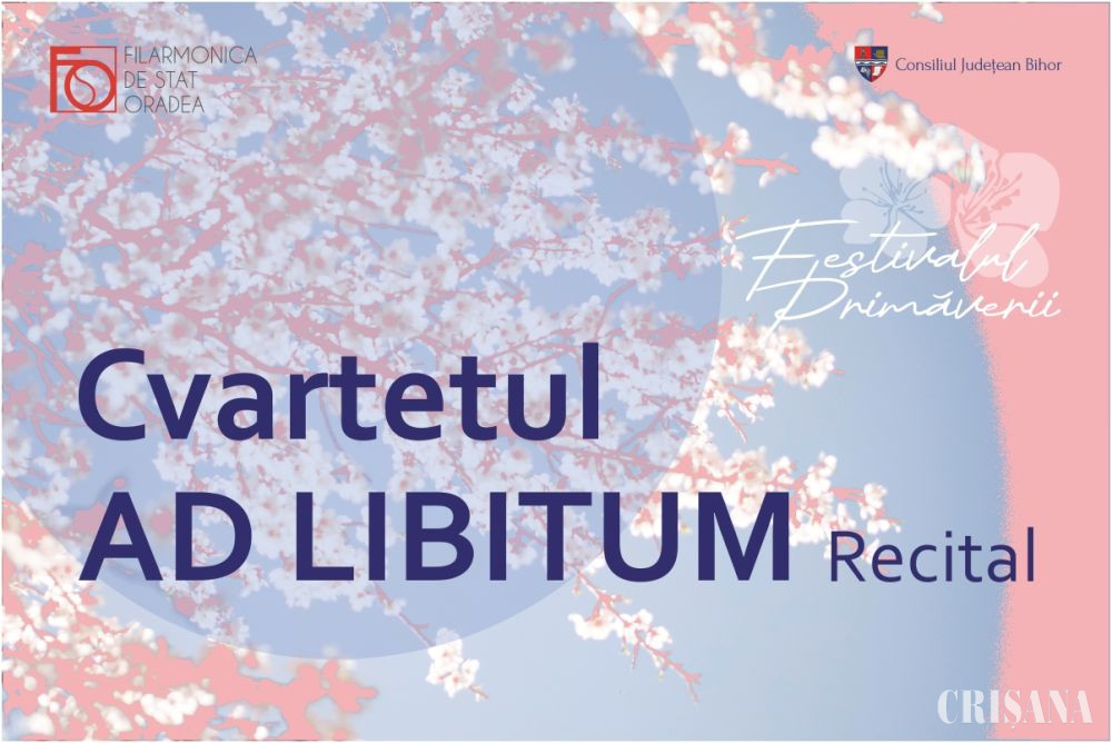 Festivalul Primăverii dorește deopotrivă să prezinte publicului atât concerte strălucite, cât și recitaluri de înaltă calitate, îmbinând cele două tipuri de evenimente culturale într-o consonanță perfectă. Primul recital din cadrului festivalului va avea loc miercuri, 20 martie, începând cu ora 19.00, la sala de concerte „Enescu - Bartók” și va fi susținut de către Cvartetul „Ad Libitum”. Violonistul Șerban Mereuță, violistul Bogdan Bișoc și violoncelistul Filip Papa se vor reuni pe scenă alături de invitatul lor, flautistul Ion Bogdan Ștefănescu, într-un recital ce cuprinde trei lucrări inedite ale repertoriului cameral: „Trio londonez nr. 2 în Sol major” de Joseph Haydn, „Cvartet în Re major K285” de Wolfgang Amadeus Mozart și „Cvartetul American nr. 12 în Fa major, op. 96” de Antonín Dvořák în aranjamentul lui Stephan Concz.