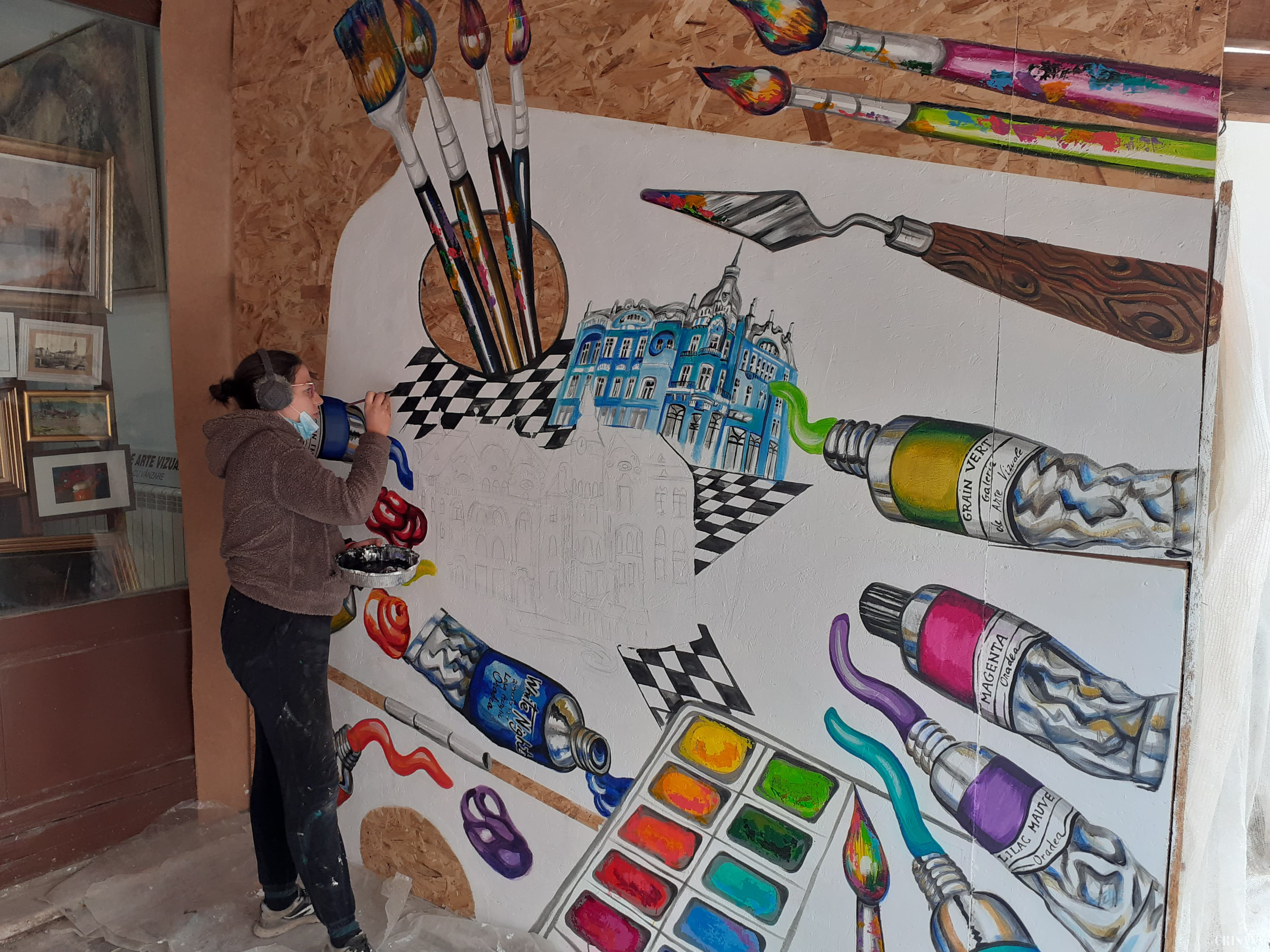 „Paleta superdimensionată a artistei Roxana face referire, în mod simbolic, la mult îndrăgitul ei oraș natal, Oradea, unde și-a descoperit pasiunea pentru artă. Pe paletă sunt vizibile două dintre clădirile reprezentative ale orașului, și anume Palatul Moskovits și Palatul Vulturul Negru, precum și detaliu de vitraliu din palat”, explică Roxana Netea, artist mural din Timișoara.