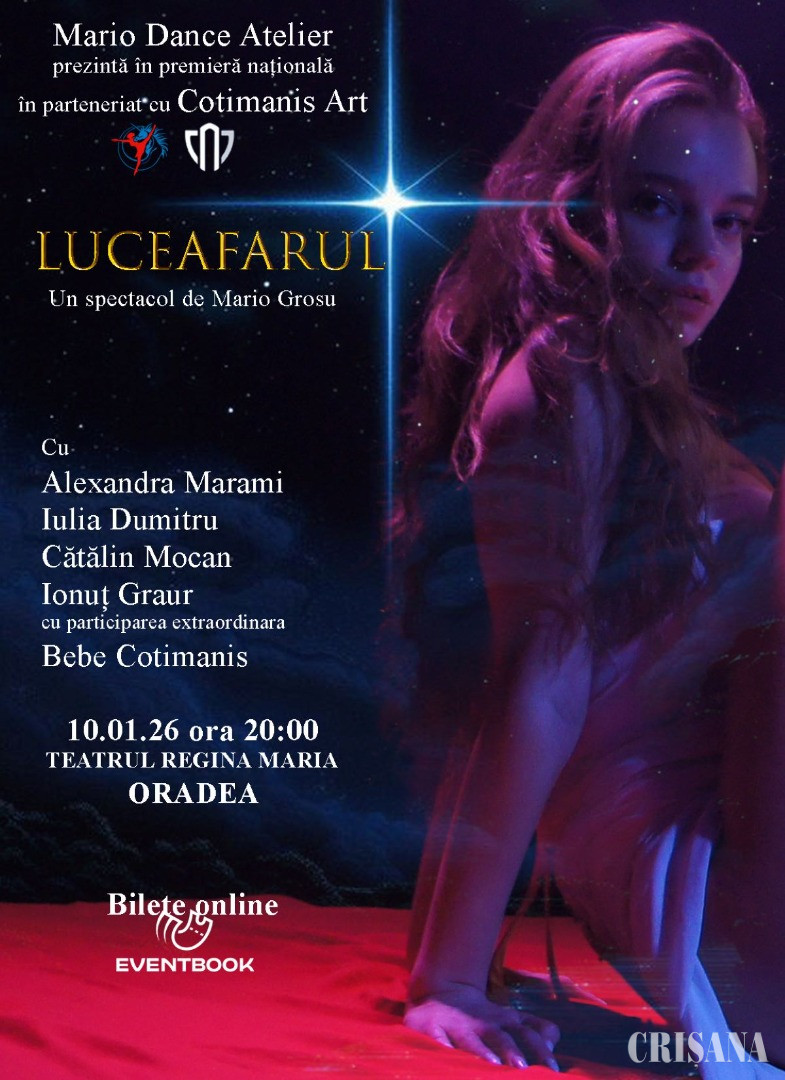 După foarte multe căutări și studii despre poezia „Luceafărul”, studii pe care coregraful Mario Grosu le-a făcut de-a lungul anilor, în 10 ianuarie, de la ora 20.00, pe scena Teatrului Regina Maria din Oradea, va avea loc, în premieră națională, spectacolul „Luceafarul”.