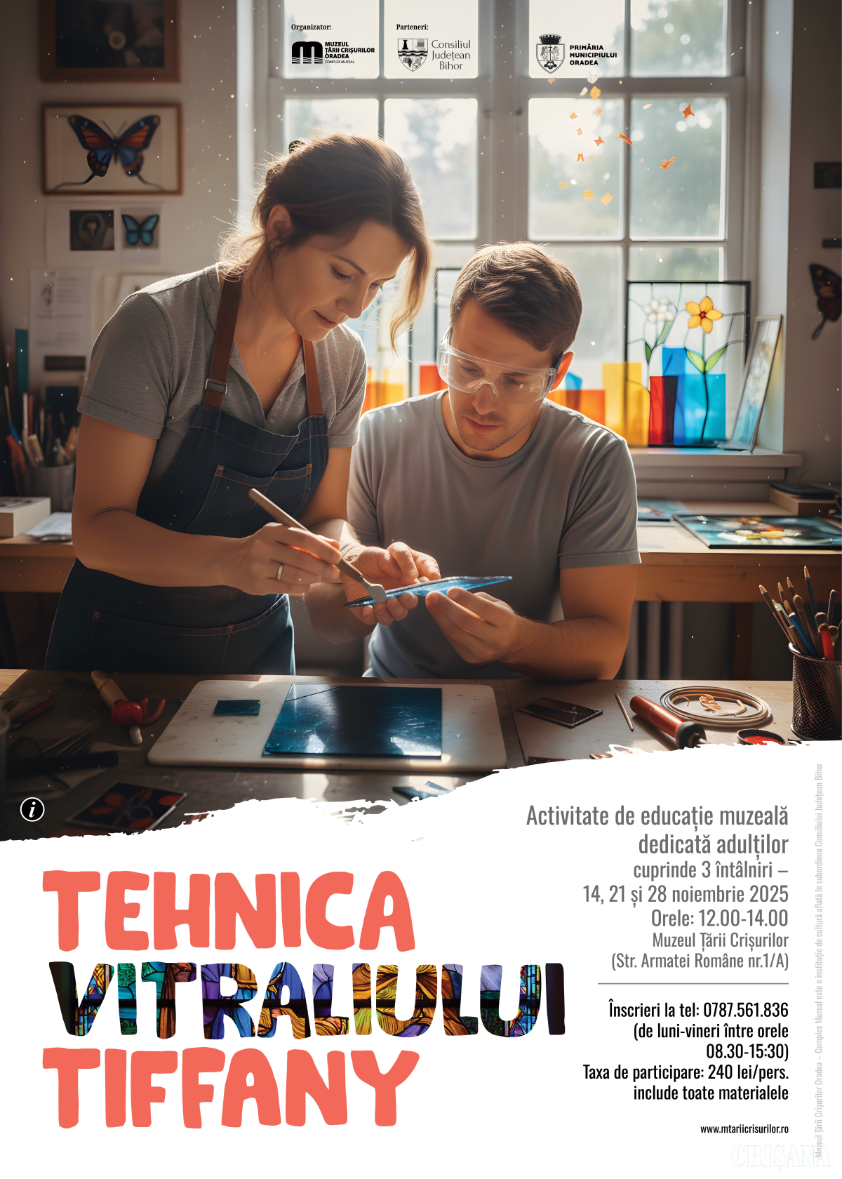 Muzeul Țării Crișurilor Oradea – Complex Muzeal organizează, în parteneriat cu Consiliul Județean Bihor și Primăria Municipiului Oradea, atelierul de educație muzeală „Tehnica vitraliului Tiffany”.