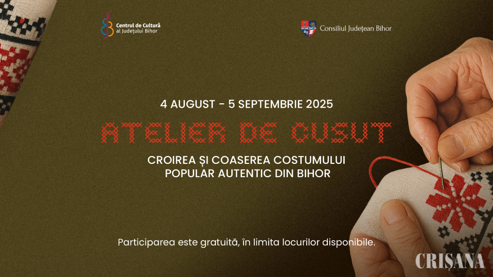 Atelierul va fi susținut de meșterul popular Florina Sferle, recunoscută în județul Bihor pentru măiestria și grija cu care păstrează viu meșteșugul cusutului tradițional. Participanții vor învăța pas cu pas să croiască și să coasă un costum popular complet, pe care îl vor păstra la final. Participarea este gratuită, în limita locurilor disponibile. Atelierul se adresează persoanelor cu vârste între 18 și 70 de ani, iar fiecare participant va suporta costul propriilor materiale de lucru. Potrivit organizatorilor, atelierul își propune să aducă mai aproape de public arta cusutului tradițional, încurajând redescoperirea și păstrarea identității culturale tradiționale prin practică directă și îndrumare de specialitate. Este o ocazie rară de a învăța un meșteșug valoros, într-un cadru organizat și prietenos.