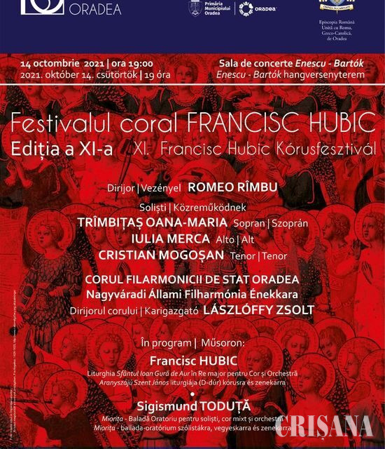 Ediția a IX-a a Festivalului coral Francisc Hubic va avea loc joi, 14 octombrie, de la ora 19.00, la Filarmonica de Stat Oradea.