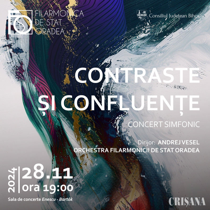 Sala de concerte „Enescu-Bartók” va găzdui joi, 28 noiembrie, de la ora 19.00, concertul simfonic „Contraste și confluențe”, condus de Andrej Vesel, dirijorul permanent al filarmonicii orădene.