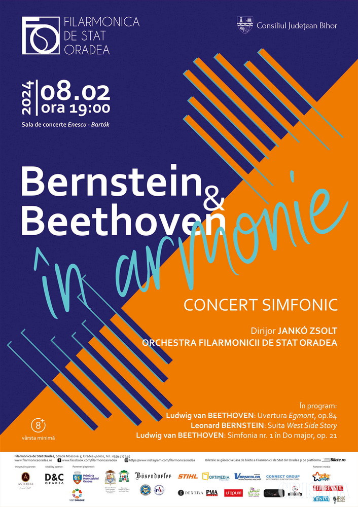 Concertul care îi va aduce pe cei doi în „armonie” va avea loc joi, 8 februarie, începând cu ora 19.00, în sala de concerte „Enescu - Bartók”. Dirijorul Janko Zsolt se va afla la pupitrul orchestral cu un program care poate fi revoluționar, romantic, energic sau poate chiar melancolic: Uvertura „Egmont” de Ludwig van Beethoven, cu caracterul său revoluționar, Suita „West Side Story” de Leonard Bernstein, cu romantismul filmelor americane de la jumătate secolului XX, și „Simfonia nr. 1 în Do major, op. 21” de Ludwig van Beethoven, cu un Beethoven tânăr și energic, care își definitiva din ce în ce mai pregnant stilul individual în genul simfonic și nu numai.