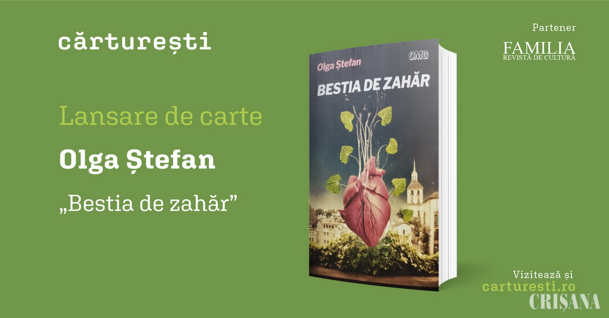 Librăria Cărturești Oradea, în parteneriat cu Revista de cultură „Familia”, organizează azi, 3 iulie, de la ora 18.00, lansarea cărții Bestia de zahăr, antologia de autor a poetei Olga Ștefan, apărută recent la Editura OMG.