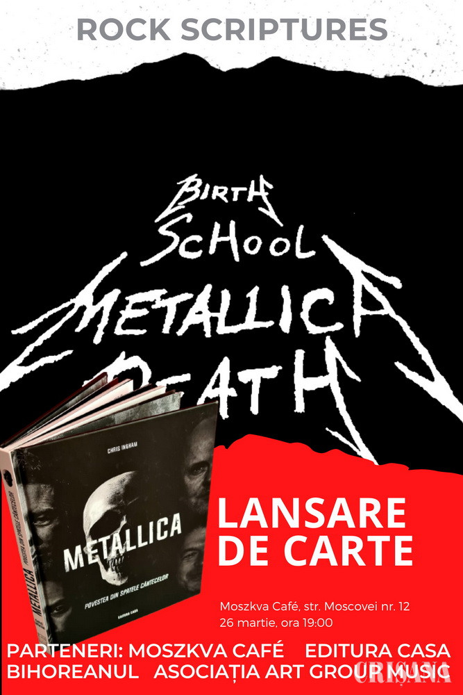 Editura Casa invită orădenii la o inedită lansare de carte, „Metallica - Povestea din spatele cântecelor”, de Chris Ingham. Volumul, care va fi lansat la Café Moszkva, trece în revistă întreaga discografie a trupei şi marchează 40 de ani de la înfiinţarea trupei.