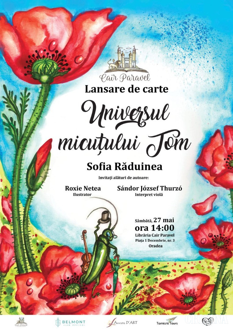 Cititorii de toate vârstele sunt invitați sâmbătă, 27 mai, de la ora 14.00, la Librăria Cair Paravel, din Piața 1 Decembrie nr. 3, Oradea, pentru a participa la lansarea cărții de poezii ilustrate „Universul micuțului Tom”, scrisă de Sofia Răduinea.