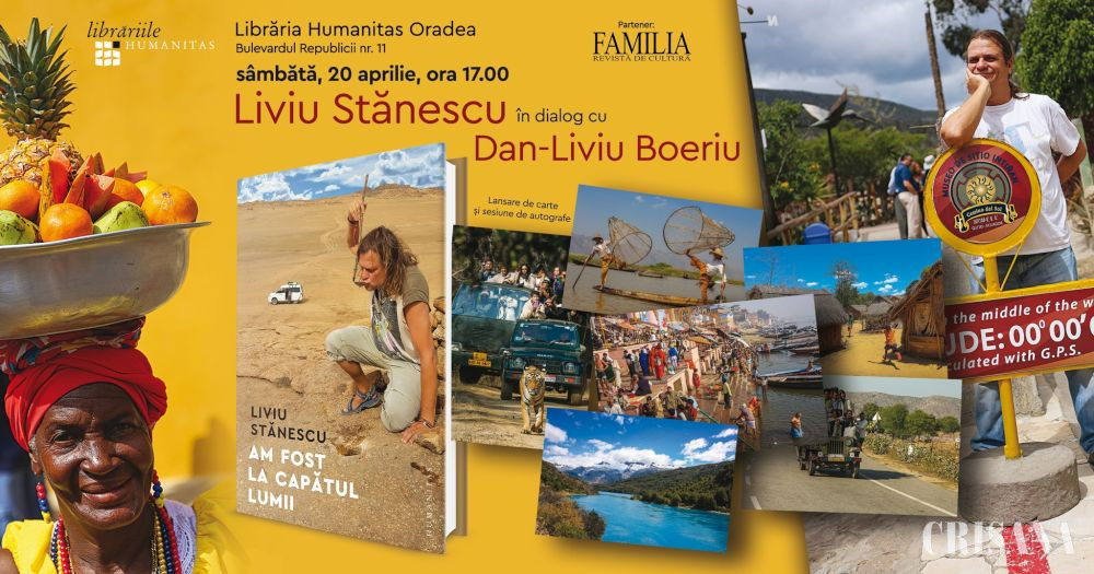 Editura Humanitas, în parteneriat cu revista Familia, vă invită sâmbătă, 20 aprilie, de la ora 17.00, la Librăria Humanitas Oradea, la lansarea volumului „Am fost la capătul lumii” de Liviu Stănescu, bestseller al editurii Humanitas.