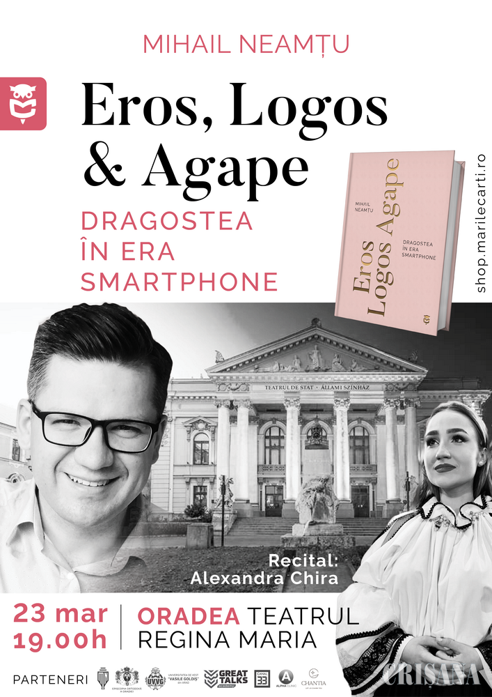În cadrul întâlnirii va avea loc și lansarea ultimului volum al lui Mihail Neamţu, proaspăt ieșit de sub lumina tiparului: „Eros, Logos și Agape. Dragostea în era Smartphone”. Evenimentul cultural este organizat de Episcopia Ortodoxă Română a Oradiei, Protopopiatul Ortodox Român Oradea, în colaborare cu Clubul Marile Cărți.