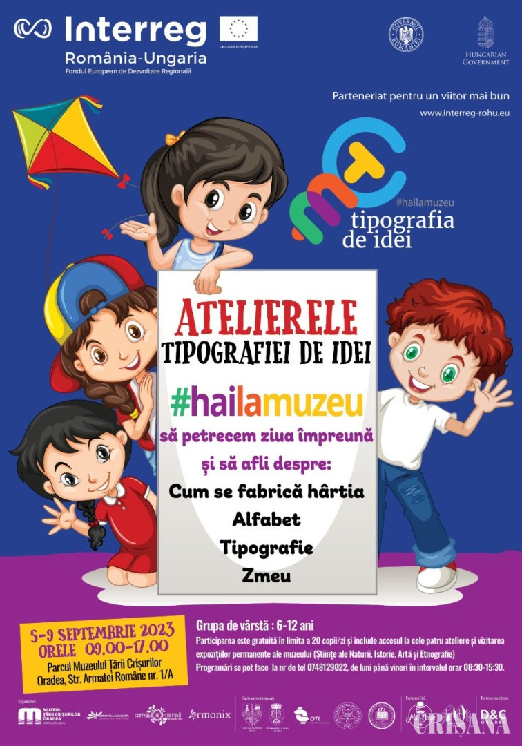Atelierele vor avea loc în perioada 5-9 septembrie în parcul Muzeului Țării Crișurilor și reprezintă o oportunitate minunată pentru cei mici de a învăța și de a experimenta procesul fabricării hârtiei, arta alfabetului, a tipografiei și magia zmeielor.