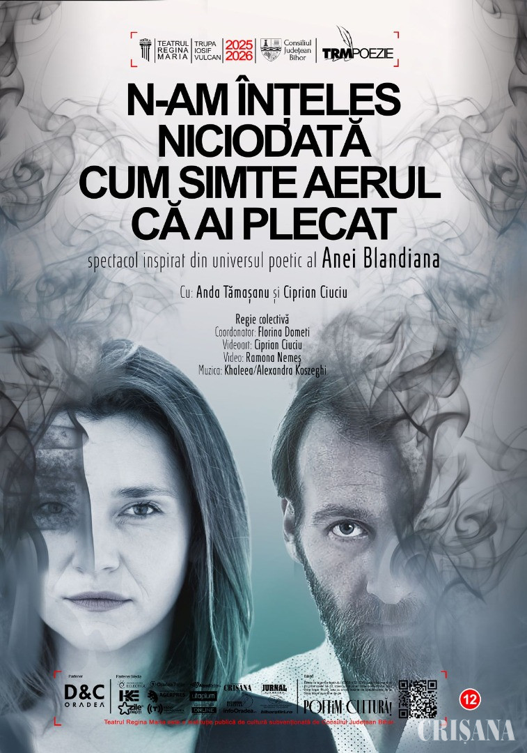 Teatrul Regina Maria din Oradea vă invită astăzi, 27 martie, de la ora 19.00, în Sala Transilvania, la premiera spectacolului „N-am înțeles niciodată cum simte aerul că ai plecat”, inspirat din universul poetic al Anei Blandiana.
