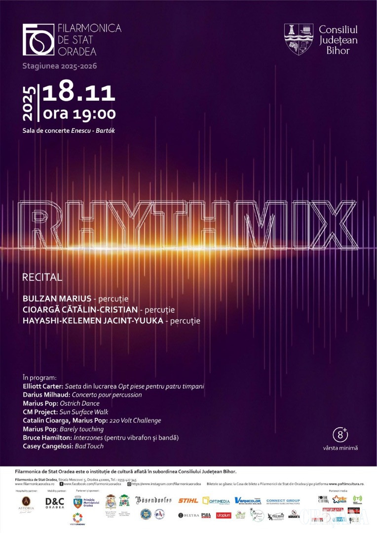„Recitalul este, în fond, un mozaic ritmic, o alchimie de stiluri și energii, o invitație de a redescoperi bucuria pură a sunetului în stare de vibrație. „Rhytmix” este o celebrare a diversității timbrale și a libertății expresive, un spectacol al mișcării și al energiei care transformă fiecare lovitură într-un gest artistic”, menționează reprezentanții Filarmonicii de Stat Oradea.