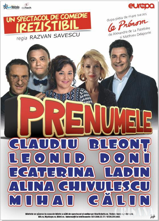Marți, 30 octombrie, de la ora 19.00, la Casa de Cultură a Sindicatelor din Oradea, se va juca spectacolul de teatru „Prenumele”, în regia lui Răzvan Săvescu.