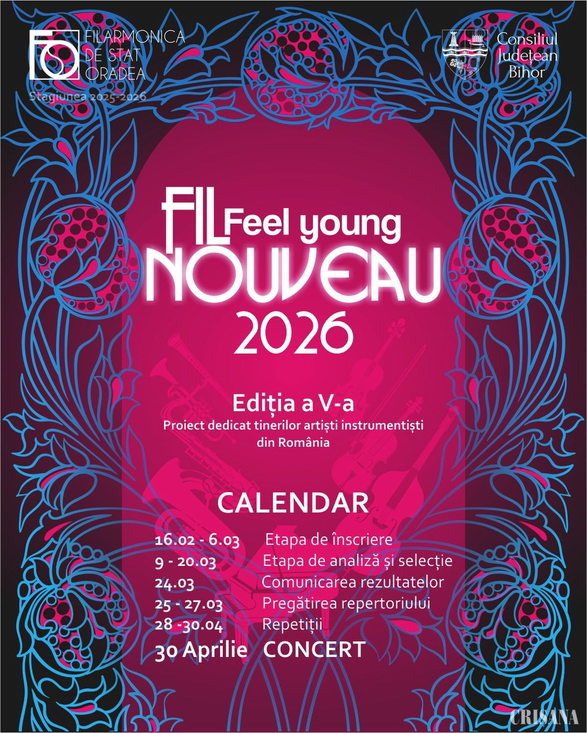 „Fil Nouveau | Feel young” susține excelența, încurajează afirmarea noii generații de muzicieni și transformă talentul în experiență scenică autentică”, anunță reprezentanții Filarmonicii de Stat Oradea.