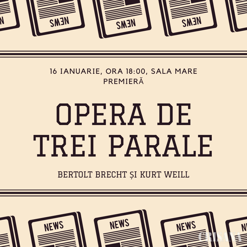 Teatrul Regina Maria anunţă prima premieră a anului 2022: „Opera de trei parale”, Bertolt Brecht și Kurt Weill , care va avea loc duminică, 16 ianuarie, de la ora 18:00, la Sala Mare a teatrului.