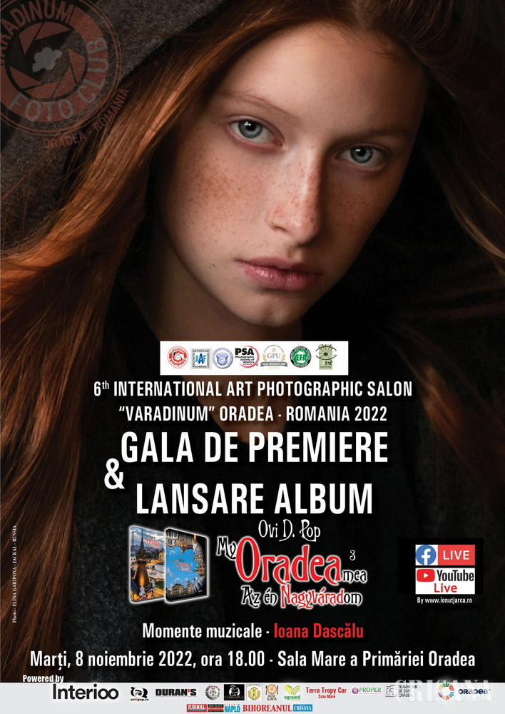 Cea de-a şasea ediţie a Salonului Internaţional de Artă Fotografică Varadinum va fi găzduită în Sala Mare a Primăriei din Oradea marţi, 8 noiembrie. Salonul include atât decernarea premiilor, cât şi lansarea albumului Oradea mea, al artistului Ovi D. Pop.