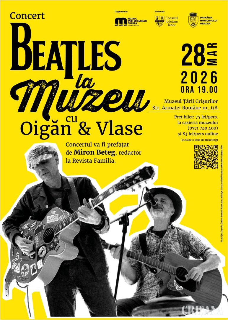 Un concert special cu piese „The Beatles”, reinterpretate pentru două chitare și două voci, va avea loc sâmbătă, 28 martie, la sediul instituției muzeale orădene.