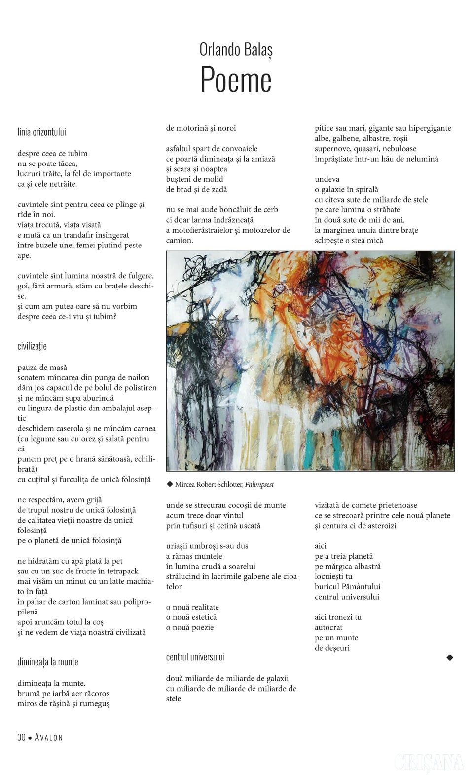 Scriitorul orădean Orlando Balaș, publicat în revista de cultură Avalon