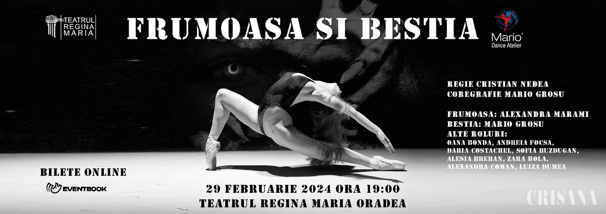 Teatrul Regina Maria din Oradea va găzdui, în premieră, în data de 29 februarie, de la ora 19.00, spectacolul de dans contemporan „Frumoasa și Bestia”, eveniment unic marca Mario Dance Atelier.
