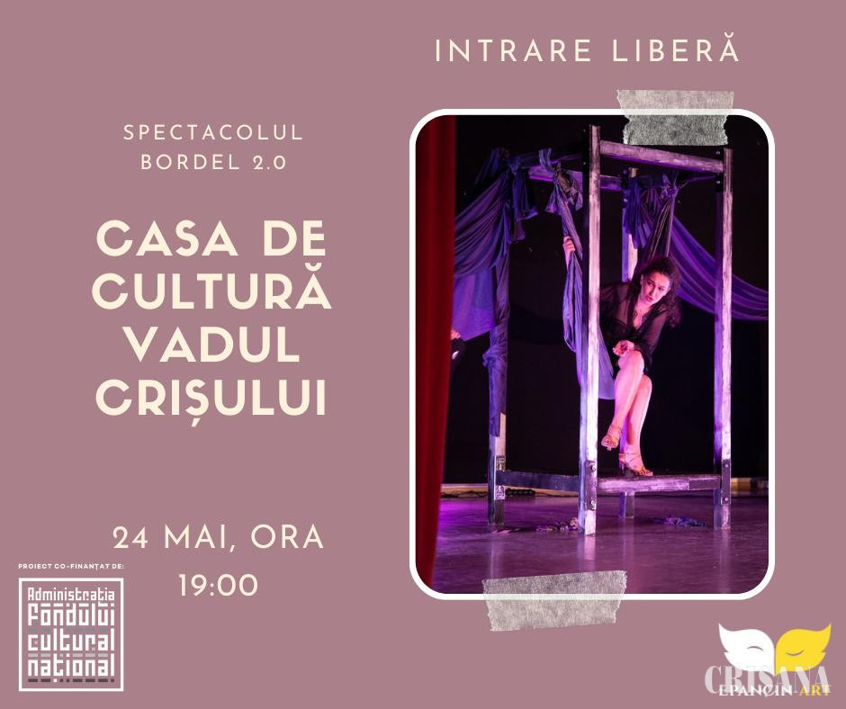 Vineri seara de la ora 19.00 în casa de cultură al comunei Vadu Crișului, în cadrul unui proiect co-finanțat de către Administrația Fondului Cultural Național se va juca piesa de teatru „Bordel 2.0”