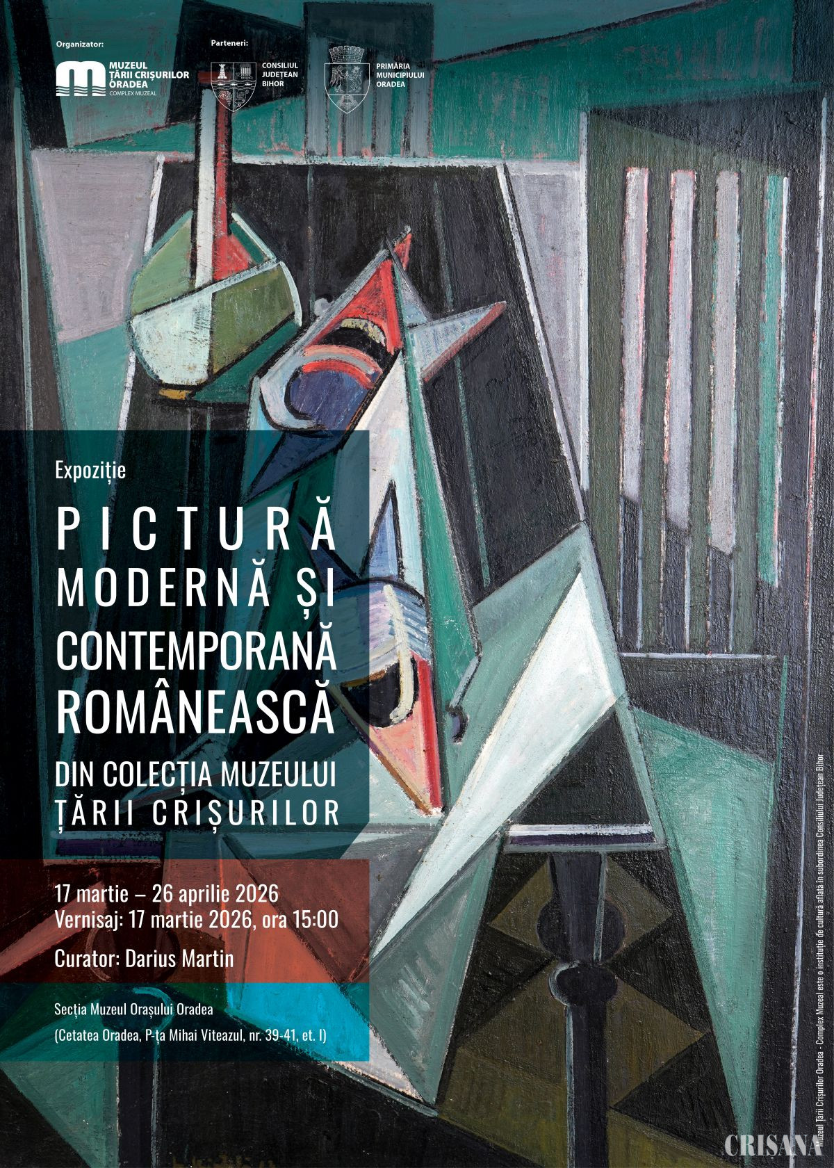 La Muzeul Orașului Oradea (Piața Mihai Viteazul nr. 39-41), marți, 17 martie, de la ora 15.00, va avea loc inaugurarea expoziției „Pictură modernă și contemporană românească din colecția Muzeului Țării Crișurilor”.