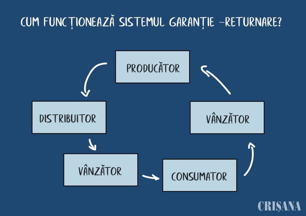 „SGR reprezintă un sistem prin care cetățenii vor plăti o garanție de 0,50 de lei atunci când vor cumpăra o băutură (apă, băuturi răcoritoare, bere, cidru, vin, băuturi spirtoase) de la un comerciant. Sistemul se aplică pentru ambalaje primare nereutilizabile din sticlă, plastic sau metal, cu volume cuprinse între 0,1 l şi 3 l, inclusiv. Pentru a fi identificate ușor, produsele care vor face parte din sistem vor fi marcate cu un logo specific. După golirea ambalajului, consumatorul va trebui să îl aducă într-unul dintre punctele de returnare organizate de comercianți, practic, în orice magazin din România. În schimbul ambalajului gol, consumatorul va primi înapoi, pe loc, valoarea garanției plătite inițial, fără a fi necesară prezentarea bonului fiscal, chiar dacă respectivul produs nu a fost cumpărat din acea locație”, arată Ministerul Mediului.
