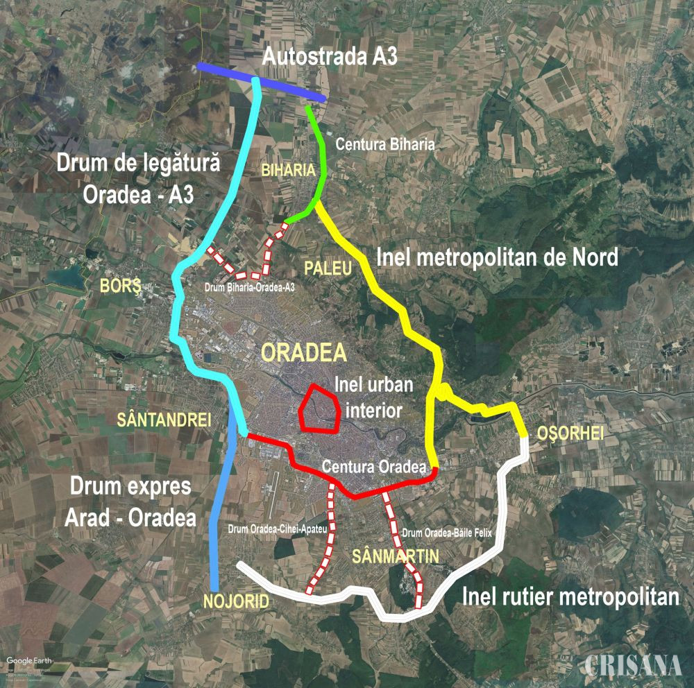 Consiliul Județean Bihor va realiza studiile de fezabilitate și documentația necesară atragerii de fonduri europene pentru următoarele proiecte de infrastructură: asigurarea conectivității drumurilor județene, respectiv conectarea nodului rutier major realizat prin noile proiecte de investiții din municipiul Oradea (Drum Expres Arad - Oradea și legătura Centura Oradea - Autostrada A3) cu zona centrală a municipiului Oradea, pe o axă ce cuprinde străzile Meșteșugarilor, Lăpușului, Oneștilor, bulevardul Decebal și strada Tudor Vladimirescu; realizarea Inelului Metropolitan de Nord, menit a asigura conectivitatea DN 1 cu DN 19, astfel - Centura Oșorhei (sensul giratoriu de pe DN 1, spre Fughiu) - municipiul Oradea, prin cartierele Tineretului, Podgoria, respectiv zona Gheorghe Doja - comuna Paleu, localitățile Săldăbagiu de Munte și Paleu - Centura Biharia.