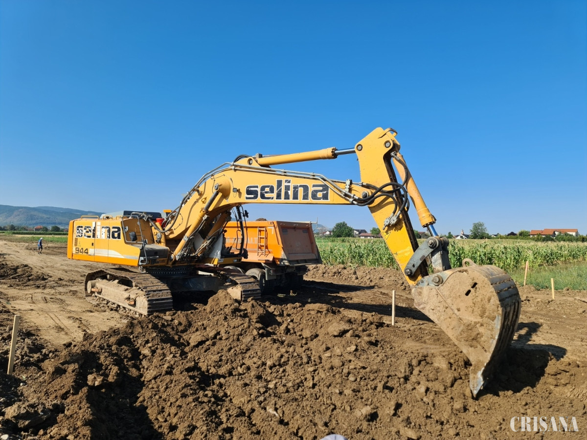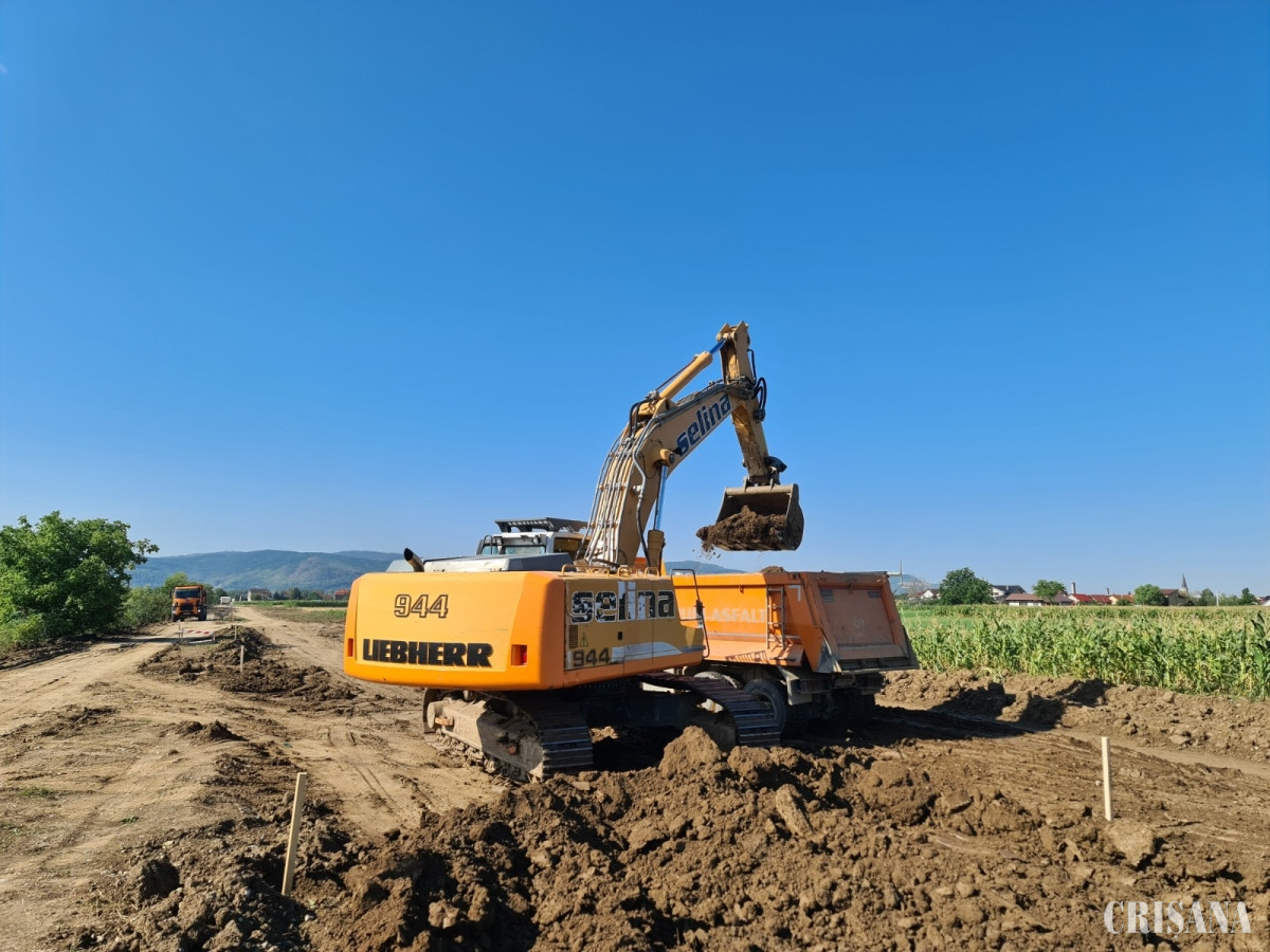 Constructorii au demarat lucrările la Varianta de ocolire a orașului Aleșd. Utilajele excavează stratul de teren vegetal și, totodată, se balastează și se compactează umpluturile.