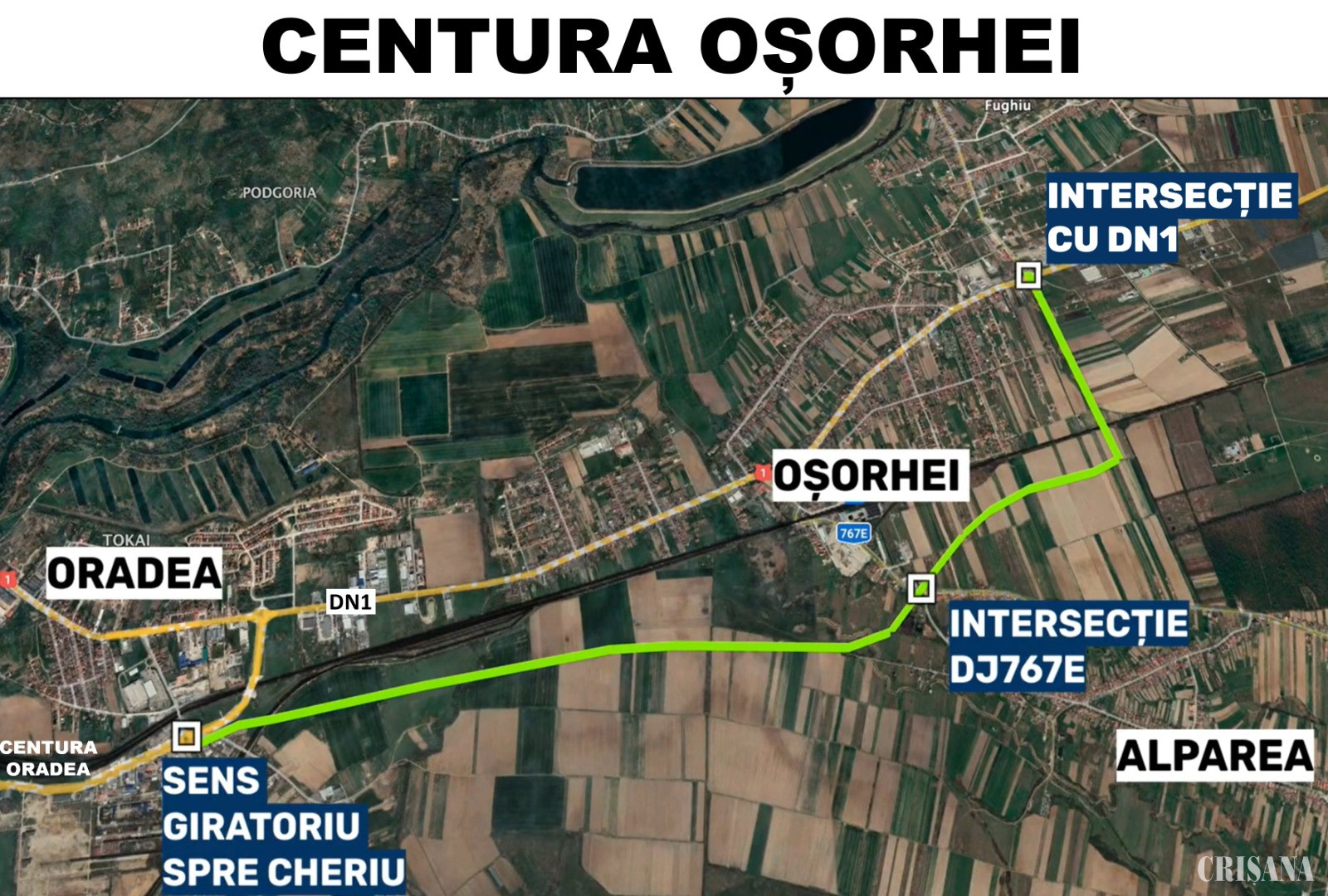 „Centura Oșorhei va porni din girația de pe Centura Oradea, înainte de trecerea peste calea ferată, și continuă spre drumul care duce spre satul Cheriu. Drumul va merge paralel cu liniile de cale ferată, trecând pe lângă Oșorhei. Va avea prima intersecție cu drumul județean care duce la Copăcel. Centura va vira apoi la stânga, printr-un pasaj peste calea ferată, și va reveni în Drumul Național DN1, în zona girației care duce spre satul Fughiu”, a menţionat președintele Consiliului Județean Bihor, Ilie Bolojan.