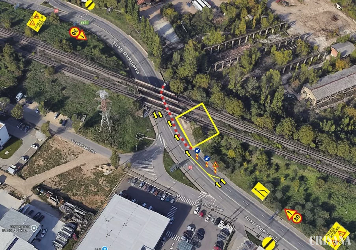 Aceste măsuri sunt necesare pentru executarea lucrărilor de forare a piloților la podul feroviar peste strada Matei Corvin.