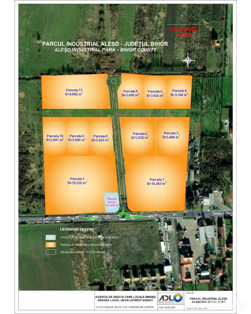 Parcul din Aleșd are o suprafață de 8,7 ha, împărțită în 11 parcele, cel din Beiuș - 17,5 ha și 16 parcele, iar cel din Marghita - 11,5 ha și 9 loturi disponibile.