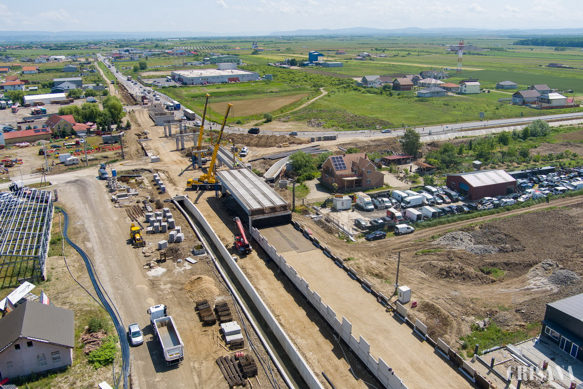 Săptămâna aceasta a început montarea grinzilor la pasajul suprateran de la ieșirea din Oșorhei spre Aleșd. Pasajul va trece deasupra sensului giratoriu de la intersecția dintre Centura Oșorhei, drumul spre Fughiu și DN1.