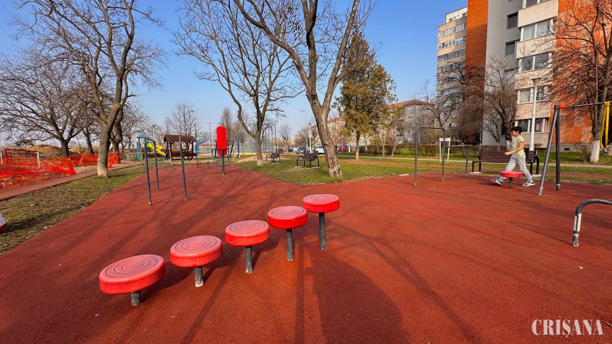 Pentru a extinde suprafața de sport, zona de fitness existentă a fost relocată în imediata apropiere a locului de joacă, fiind încadrată pe o platformă generoasă de tartan.
