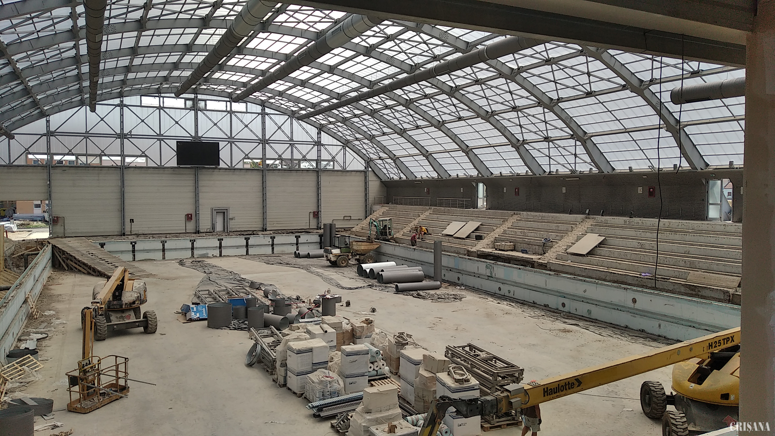 În ceea ce privește lucrările la instalațiile electrice, curenți slabi și semnalizare incendiu, acestea sunt finalizate în proporție de 75%. La fel și amenajările interioare la corpul anexă constând în montajul pereților din gips carton, montajul gresiei și faianței, realizarea hidroizolațiilor pereților și șapei, realizarea vopsitorii lavabile. Cuva bazinului este gata în procent de 25%.
