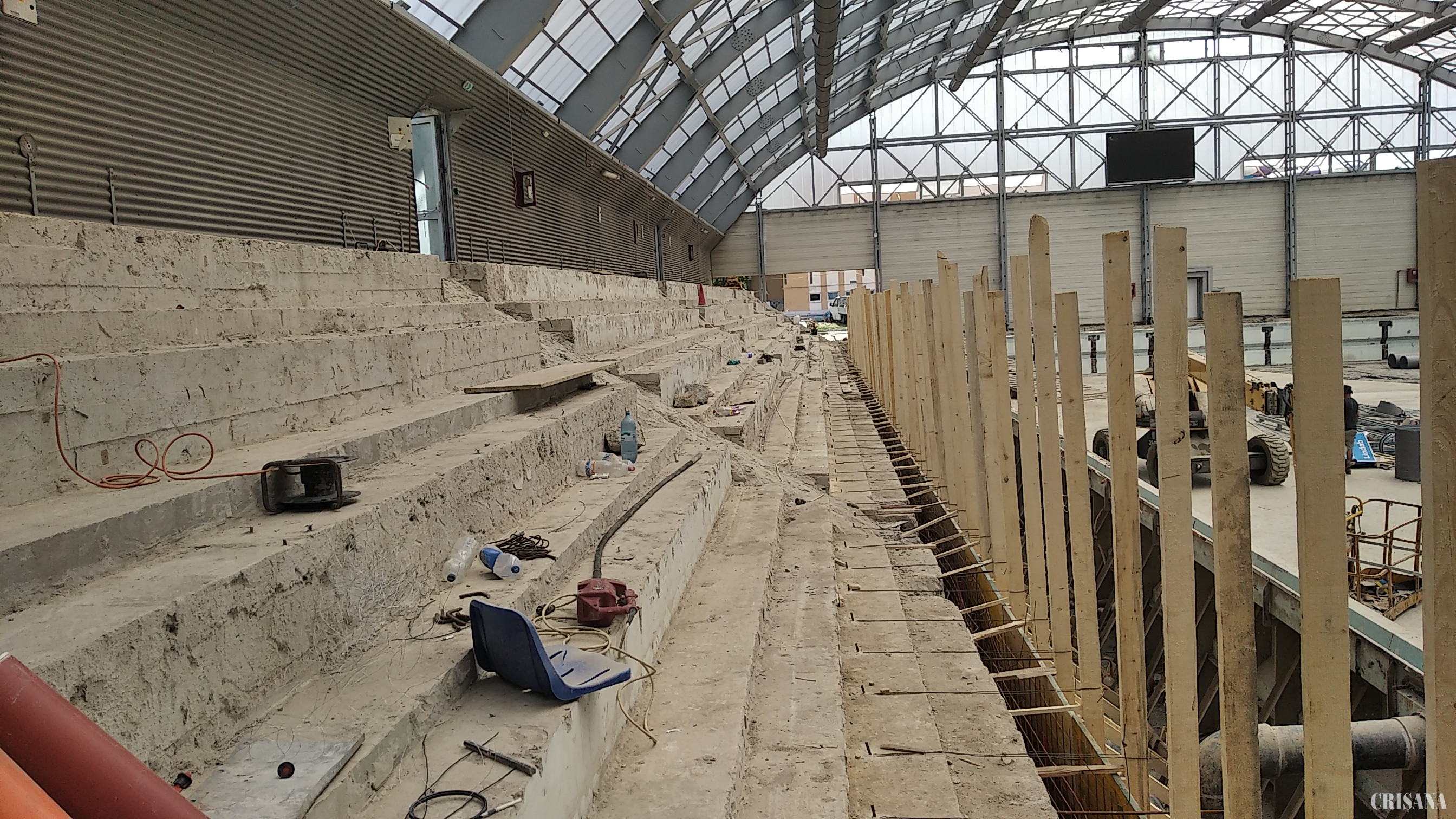 Se mai lucrează încă la instalațiile sanitare, termice și de ventilații, instalațiile electrice, curenți slabi, semnalizare incendiu, amenajările interioare și la reabilitarea cuvei.