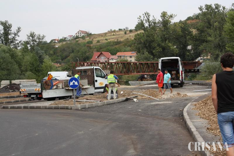 Podul de peste Crişul Repede, din zona Dragoş Vodă - Făcliei, trebuia inaugurat în urmă cu un an. Un nou termen pentru darea în funcţiune era sfârşitul lunii septembrie. Ieri, în urma unei vizite pe şantier, se putea vedea cu ochiul liber că tablierul metalic nu a fost montat în întregime, mai existând câteva tronsoane care nu au fost fixate pe malul stâng. Abia după ce tablierul ar urma să fie fixat pe poziţie, peste acesta vor fi montate plăcile prefabricate, se va turna structura de beton de 20 de cm, apoi mixtura asfaltică. Această procedură necesită ceva timp, astfel că e greu de crezut că termenul asumat de 30 septembrie va şi respectat. În paralel, pe strada Dragoş Vodă, Primăria Oradea derulează lucrările de amenajare a unui sens giratoriu, respectiv a rampei de acces spre pod. Proiectul mai prevede realizarea unui drum spre pod şi pe malul drept. Lungimea totală a rampelor este prevăzută la 163 m - cu lăţimea carosabilului de 7 m, două trotuare cu lăţimea de 2 m, reţea de canalizare pluvială în lungime de 200 metri liniari. Totodată, se va realiza iluminatul public (reţea de iluminat şi 9 stâlpi) şi pasajul pietonal la rampă mal drept, în lungime de 32 metri şi 5,5 m lăţime. Acest proiect se va executa în baza contractului nr. 261.764/10.11.2011, care se ridică la valoarea de 2.092.042, 62 lei (fără TVA), executanţi fiind S.C. Construcţii Bihor în asociere cu S.C. Drumuri Orăşeneşti.