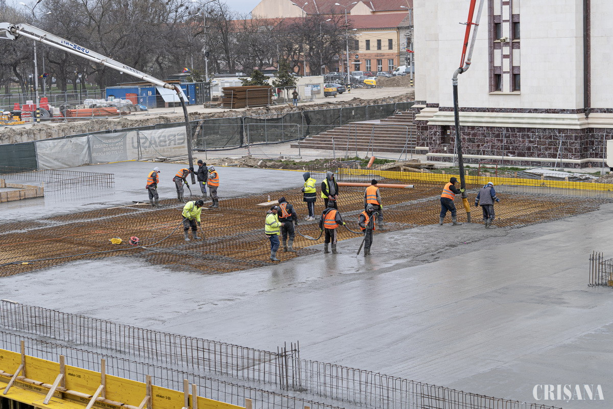 „În zilele următoare, se va trece la armarea și cofrarea aticelor și a stâlpilor de pergolă din aceeași zonă. În plus, se va pregăti suprafața pentru turnarea pardoselii în zona B a corpului P1. Această acțiune va avea loc săptămâna viitoare, pe o suprafață de circa 1.300 mp”, precizează municipalitatea orădeană.
