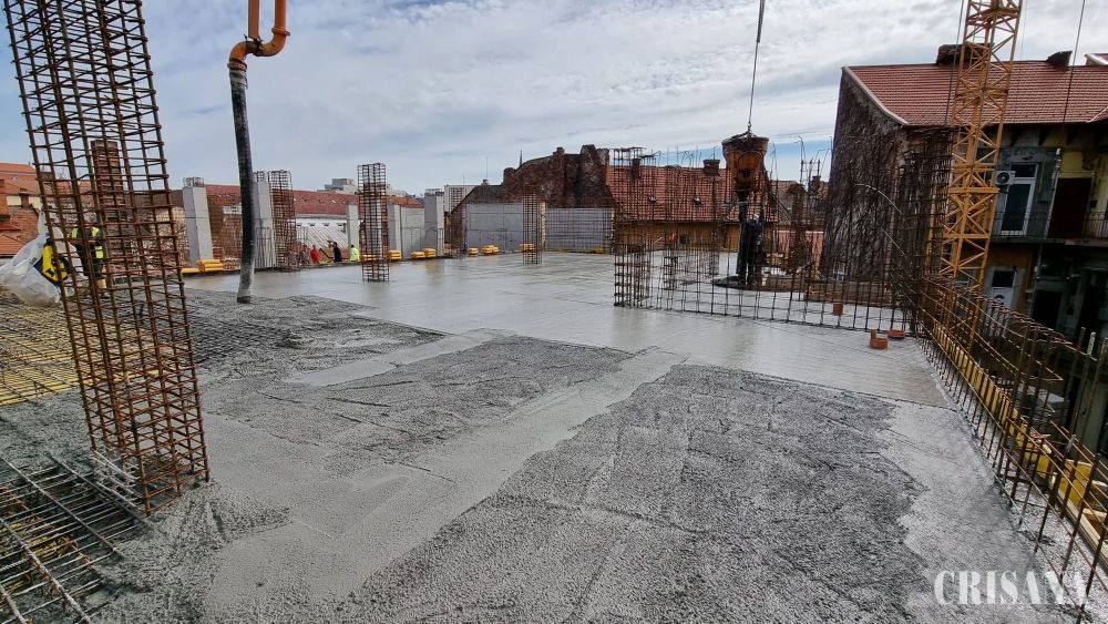 Se lucrează la structura de rezistență a parcării de pe strada Iosif Vulcan, în cursul zilei de joi, 23 martie, fiind turnată penultima placă, situată la cota +8,60, cu suprafața de 527 mp și un volum de 147 mc. Ultima placă, situată la cota +11,60, care are și rol de învelitoare, va fi turnată în cursul lunii aprilie și va avea o suprafață de 1.216 mp, cu un cubaj de beton de 340 mc.