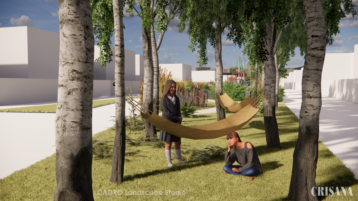 Parcul va avea mai multe zone funcționale din punct de vedere al activităților și amenajărilor: loc de joacă natural, colț cu hamace și mesteceni, colț cu hoteluri pentru insecte și căsuțe pentru păsări, movile-delușoare cu gazon și plante perene, gădină comunitară, spațiu verde deschis cu zona pentru yoga și activități în aer liber, zona cu ochi de apă-iaz. Zona destinată copiilor va cuprinde trunchiuri de arbori, bușteni, bolovani și o porțiune amenajată cu elemente de joacă realizate din lemn (pod de cățărat, păianjen din pânză pentru cățărat etc.). Cele două tronsoane sunt separate printr-o denivelare de pământ pe sub care va exista un tunel îngropat. Toboganele vor fi construite pe o movilă/ elevație de pământ, ce poate fi utilizată inclusiv pentru jocurile de iarnă ca derdeluș sau pârtie pentru săniuș. Parcul va fi delimitat de o plantație de arbuști nativi, care, pe lângă rolul de protecție, au și scopul de a izola fonic și vizual zona de joacă de spațiul străzii. Valoarea estimată a investiţiei este de 3.412.975,28 lei inclusiv TVA.