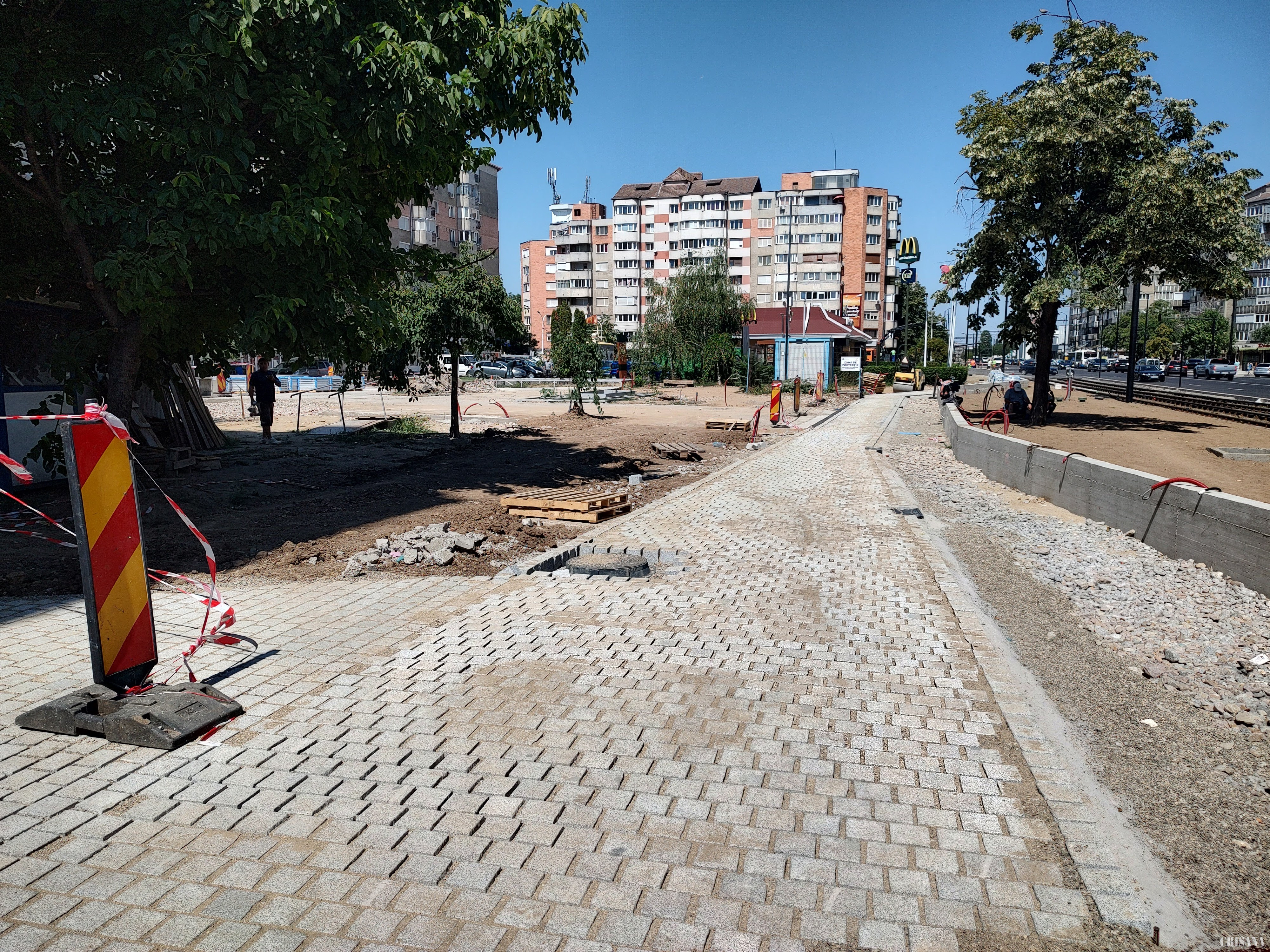 Lucrările din șantier au presupus curățarea terenului, desfaceri și decapări ale straturilor existente precum și desfacerea fundațiilor jardinierelor, dar și desfaceri parapeți, trepte, borduri, asfalt existent și suprafețe betonate. De asemenea, înlocuirea rețelelor și partea de instalații electrice au fost finalizate.